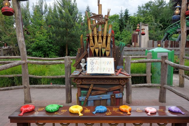 Hofnarr und Zauberer Pardoes kann der Verlesung der Hausregeln allerdings wenig abgewinnen und grätscht dazwischen. Stattdessen lädt er zu einer Reise durch die magischen Räume des Palasts ein und lässt mit einem Zauberspruch die Treppe aufklappen. Über ein schmuckloses Treppenhaus geht es nach unten, dort können sich die normalen Besucher für eine der drei möglichen Touren entscheiden - nämlich die Heldentour, die Schattentour (Schatztour) und die Muziektour (Musiktour). Als Single Rider entfällt die Wahl natürlich und man wird eben dort zugeteilt, wo gerade ein Platz frei ist. In meinem Fall war dies nach wenigen Minuten Wartezeit die Musiktour - die ich gemäß meiner Erinnerung auch bei meiner bis dato einzigen Fahrt 2018 gewählt hatte. Die Unterschiede sind aber eh relativ marginal. Die Musiktour bleibt direkt nach dem Verlassen der Station in einer kleinen Nische vor einer Tür stehen, während die beiden anderen Fahrzeuge überholen, dann geht es gemeinsam weiter durchs Observatorium von Pardoes Lehrmeister Großmeister Almar. Im Panorama-Salon gewähren Balkone einen Überblick über Hartenstad, ehe es weiter ins Botanicum geht. Dort taucht ein riesiger Wal hinter den Scheiben des Gewächshauses auf, was diesen nicht sonderlich gut bekommt. Die drei Fahrzeuge flüchten daraufhin in drei separate Räume. Das Heldenkabinett, das Schatzboudoir und den Musiksalon. Gegenüber finden sich zudem weitere Türen für Küchen-, Flora- und Fauna-Tour, auch wenn diese in Wirklichkeit gar nicht zur Auswahl stehen. In den leicht unterschiedlich eingerichteten Räumen parkt man vor einem Spiegel und O.J. Punctuel fordert einen Abbruch der Tour wegen Regelverstößen. Aber Pardoes setzt die Führung mithilfe von Magie und Unterstützung der Besucher fort. Also der in der jeweils vorderen Reihe sitzenden Besuchern, die ein bisschen auf einem Touchscreen rumdrücken müssen. Im sich anschließenden Fantasiedepot kreisen kurzzeitig auch mal sechs Fahrzeuge um die spiralförmigen Säulen, ehe sich jede der drei Touren in einer passenden Nische einfindet. Dort kämpfen bei der Heldentour zwei Ritterrüstungen miteinander, bei der Schatztour funkelt ein Diamant in den verspiegelten Wänden und bei der Musiktour bläst eine Orgelmaschine den Besuchern den Marsch. Zwischen den Weinregalen des königlichen Proviantlagers hindurch geht es schließlich zum Finale der Tour im Königssaal, wo die Party bereits in vollem Gange ist. Während König Pardulfus und Prinzessin Pardijn sich an der reich gedeckten Tafel erfreuen, tanzen wir einmal durch den Raum. Danach gibt es noch kurz die unterwegs gemachten Onride-Fotos zu bestaunen, dann ist auch schon der Ausstieg erreicht. Kurzum: Ein netter Darkride, der aber nicht ganz mit dem Charme der alten Efteling-Klassiker mithalten kann.