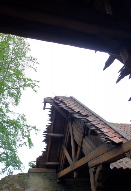 Ein paar der Dächer stehen glücklicherweise noch, denn es fing nun doch an, kurzzeitig zu nieseln.