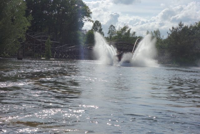 Mit einem finalen Drop und einer Linkskurve geht es schließlich hinaus auf den See.