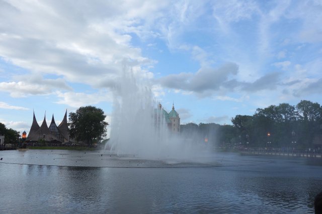Daher schaute ich mir nur wenige Minuten des Spektakels an, das der Wind zudem tröpfchenweise ans diesseitige Ufer des Sees wehte, ehe ich mich auf den Weg zum Ausgang des Parks machte. Im dortigen Shop gönnte ich mir noch einen Danse-Macabre-Magneten, um meine Errungenschaften des Tages zuhause aufhängen zu können. Dann humpelte ich deutlich später als angedacht zu meinem Auto. Immerhin kam ich kurz vor Parkschluss um 19 Uhr ziemlich problemlos vom Parkplatz runter und auch der Verkehr auf den Autobahnen gen Heimat hielt sich in Grenzen. So kam ich knapp 290 Kilometer später irgendwann zwischen 22:15 Uhr und 22:30 Uhr wieder zuhause an. Etwas erschöpft aber hochzufrieden.