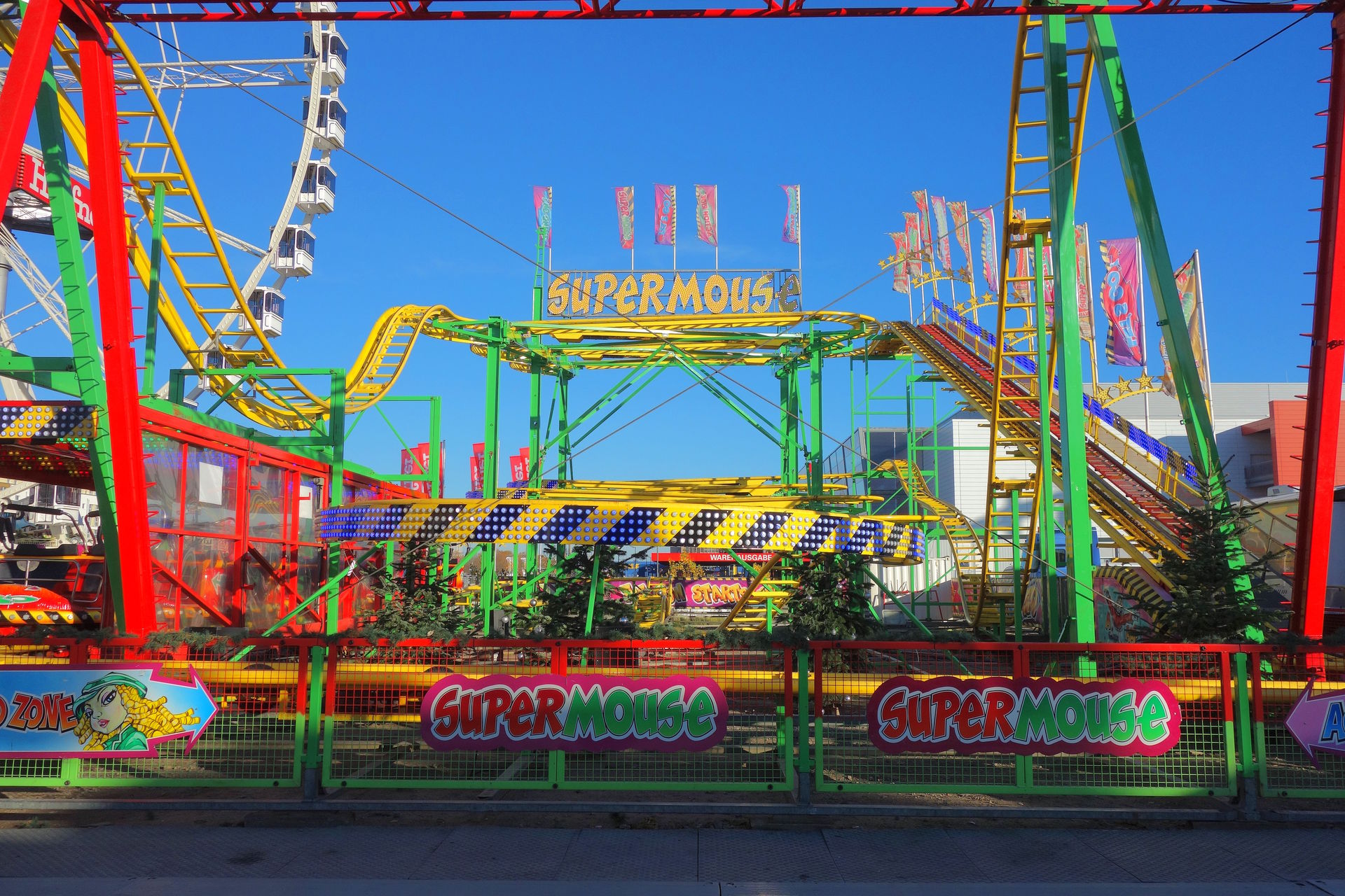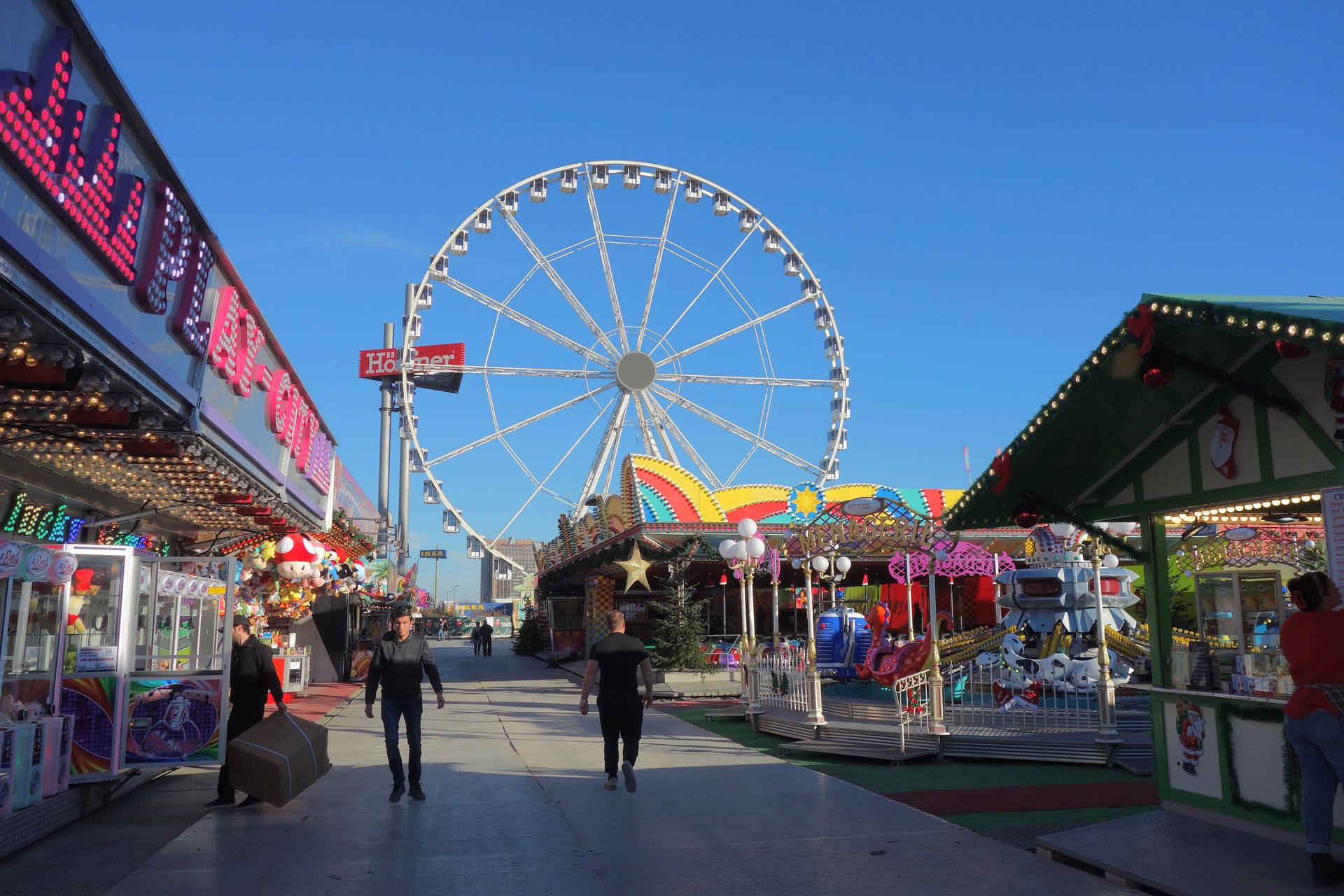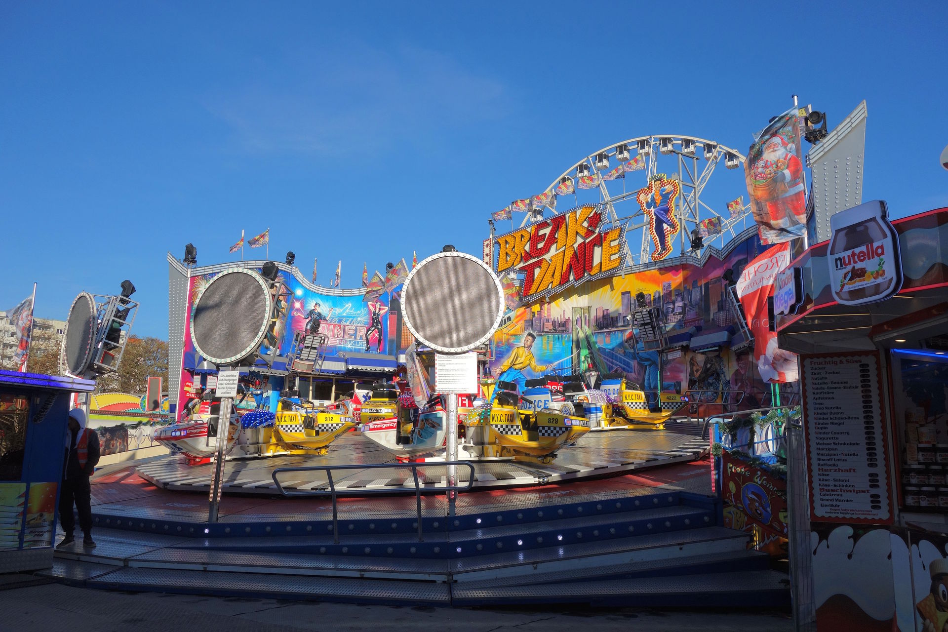 Ich startete linksherum an Kinderkarussell und Autoscooter vorbei in Richtung Riesenrad.