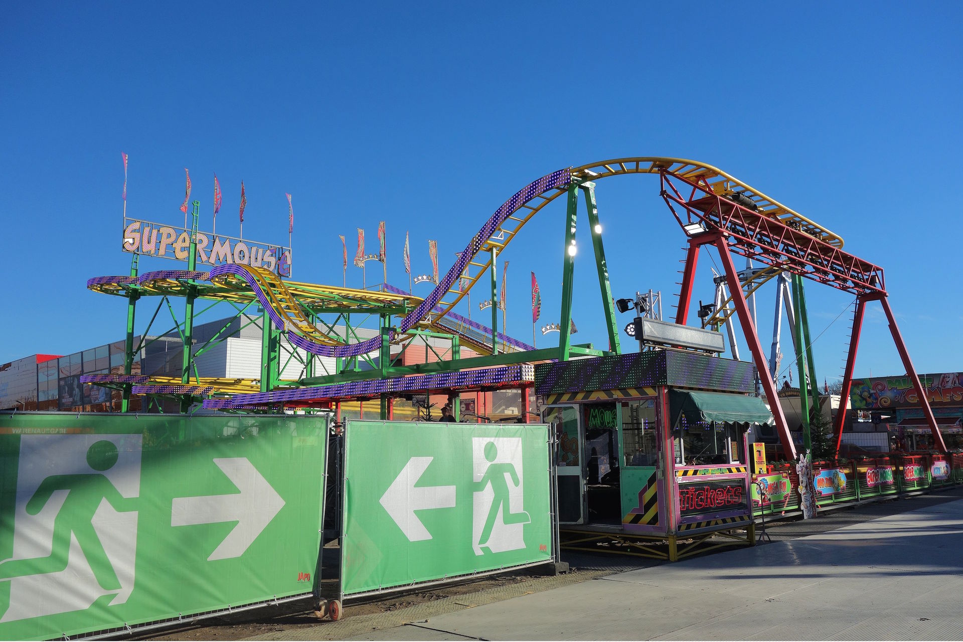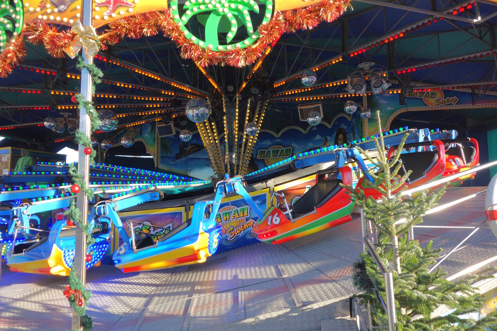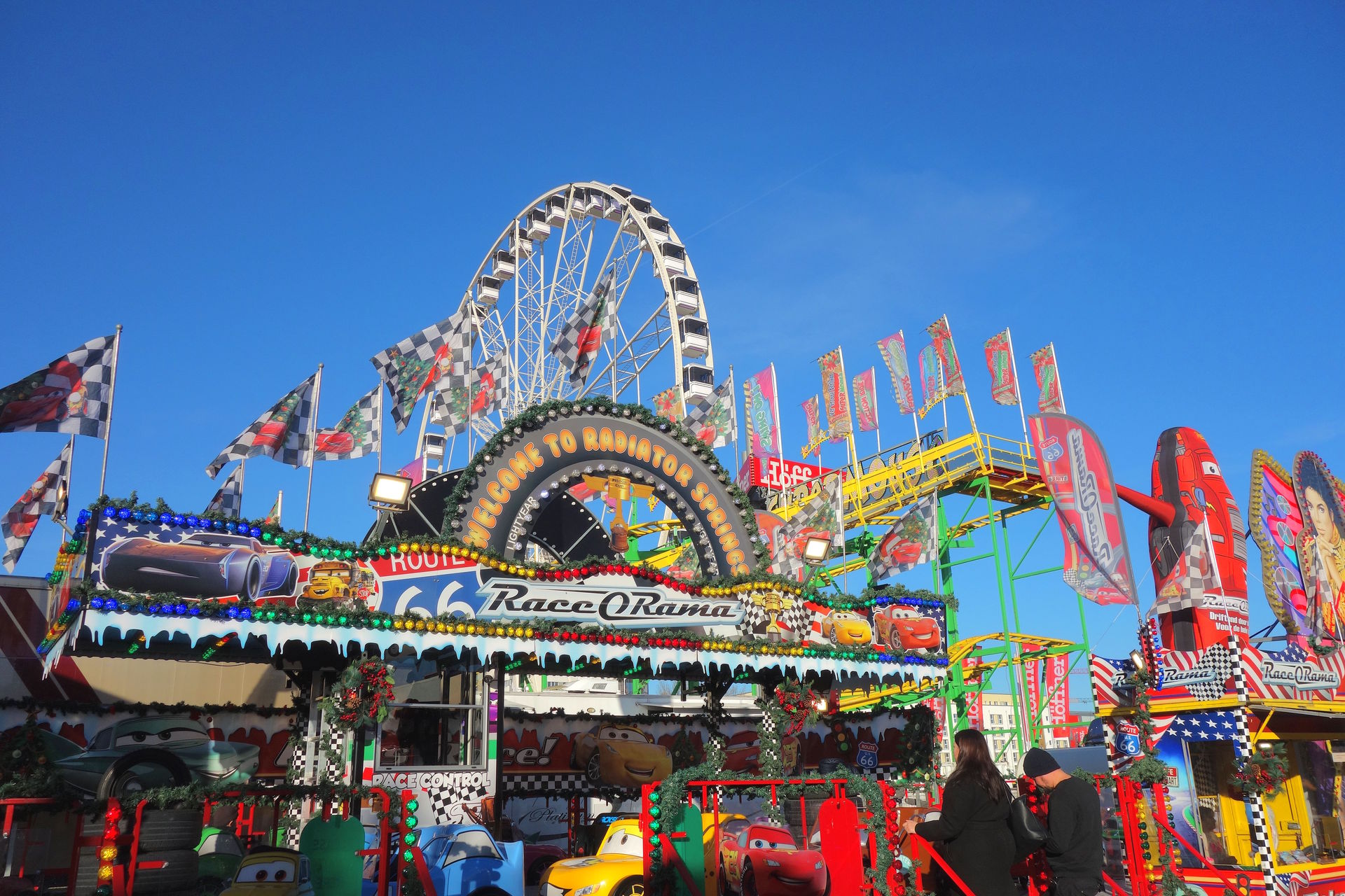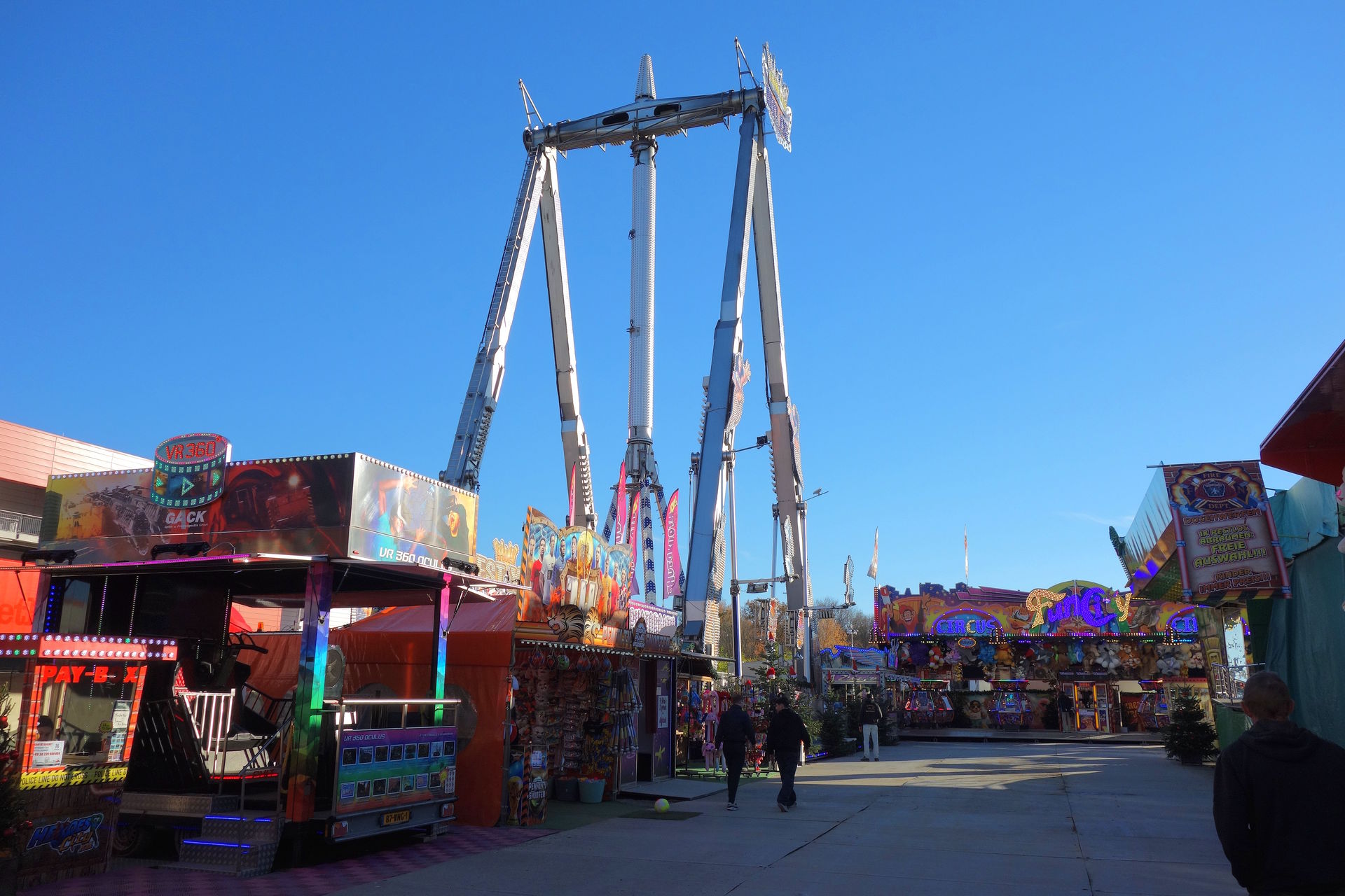 Ich startete linksherum an Kinderkarussell und Autoscooter vorbei in Richtung Riesenrad.