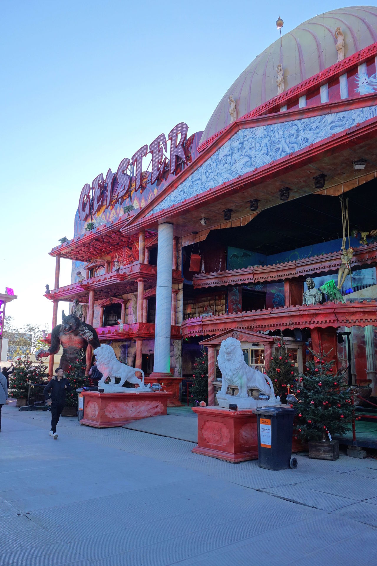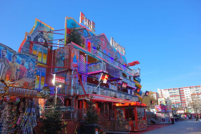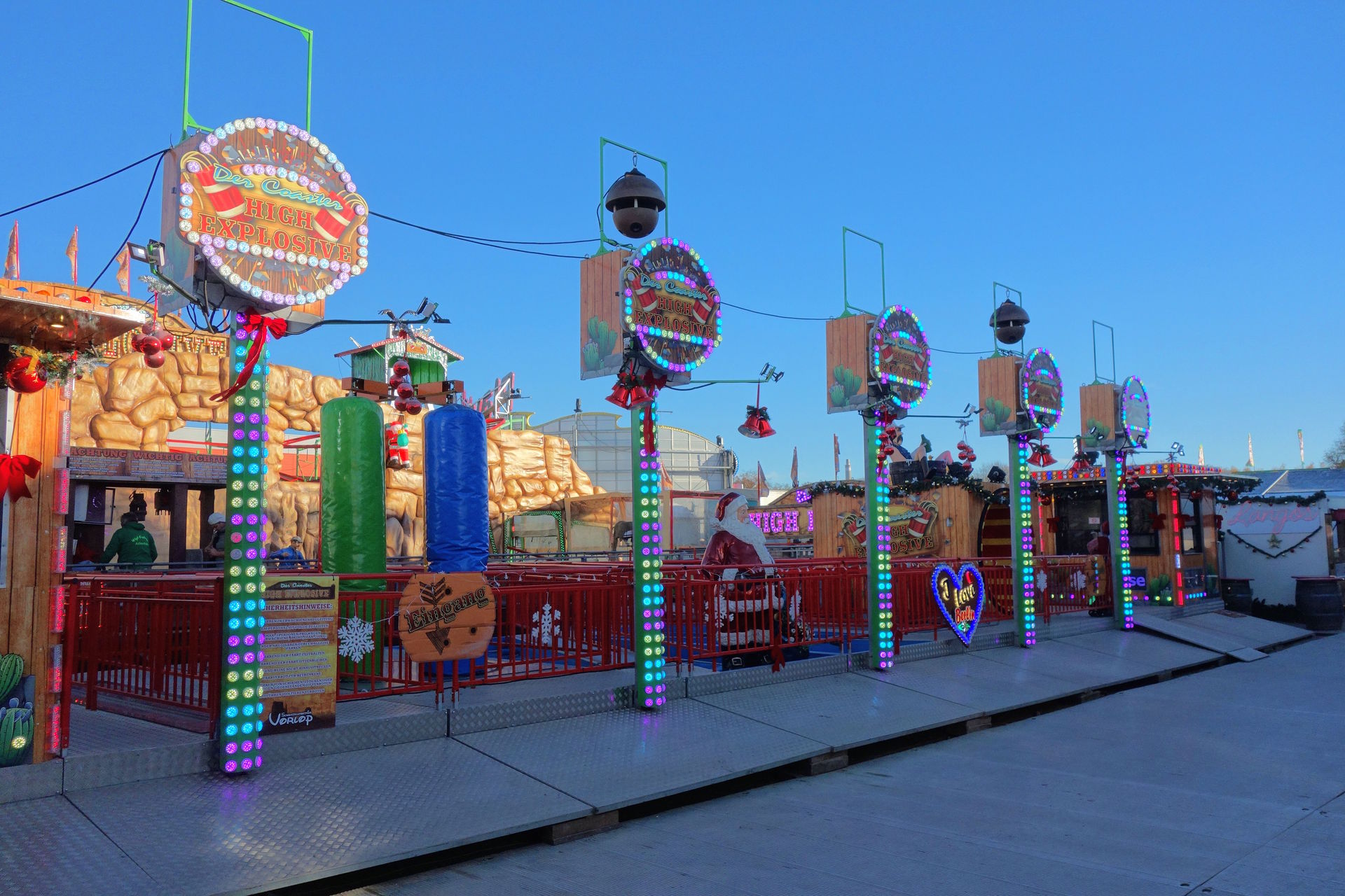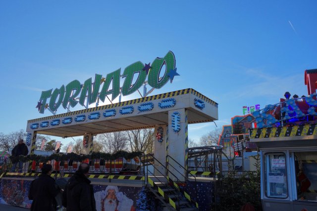 Nach ziemlich genau 30 Minuten hatte ich die Lichtenberger Winterzeit einmal passiert. Erwartungsgemäß waren zu dieser Zeit deutlich mehr Schausteller als Besucher zugegen. Außerdem waren noch zwei Mitarbeiter mit Akkuschrauber unterwegs. Sie zogen hier und da lockere Schrauben nach, welche die Metallplatten fixieren sollten, mit denen der verschlungene Rundweg ausgelegt war. Leider waren mir auch auf dem Rummelplatz keine Toiletten ins Auge gesprungen, sodass ich schnellen Schrittes wieder zur Tram-Haltestelle marschierte. Während der wiederum halbstündigen Fahrt zurück zum Alexanderplatz beruhigte sich der Bauch dann aber tatsächlich wieder, sodass ich doch keine Toilette mehr brauchte.