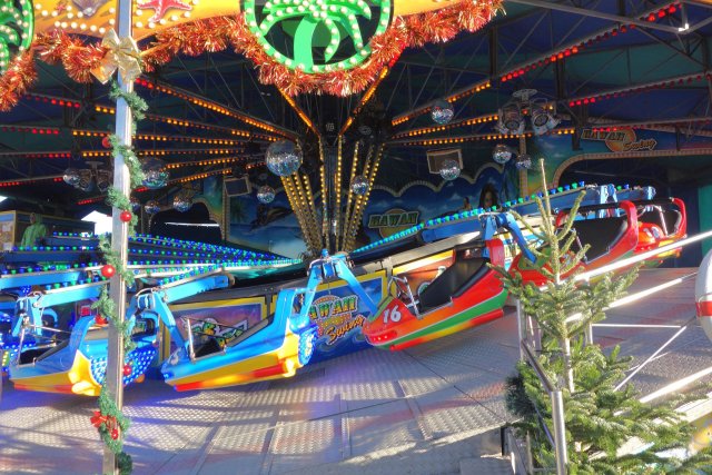 Die nordöstliche Ecke des Platzes füllt das Riesenrad, in der südöstlichen Ecke schaukelt Best XXL von Zinnecker.