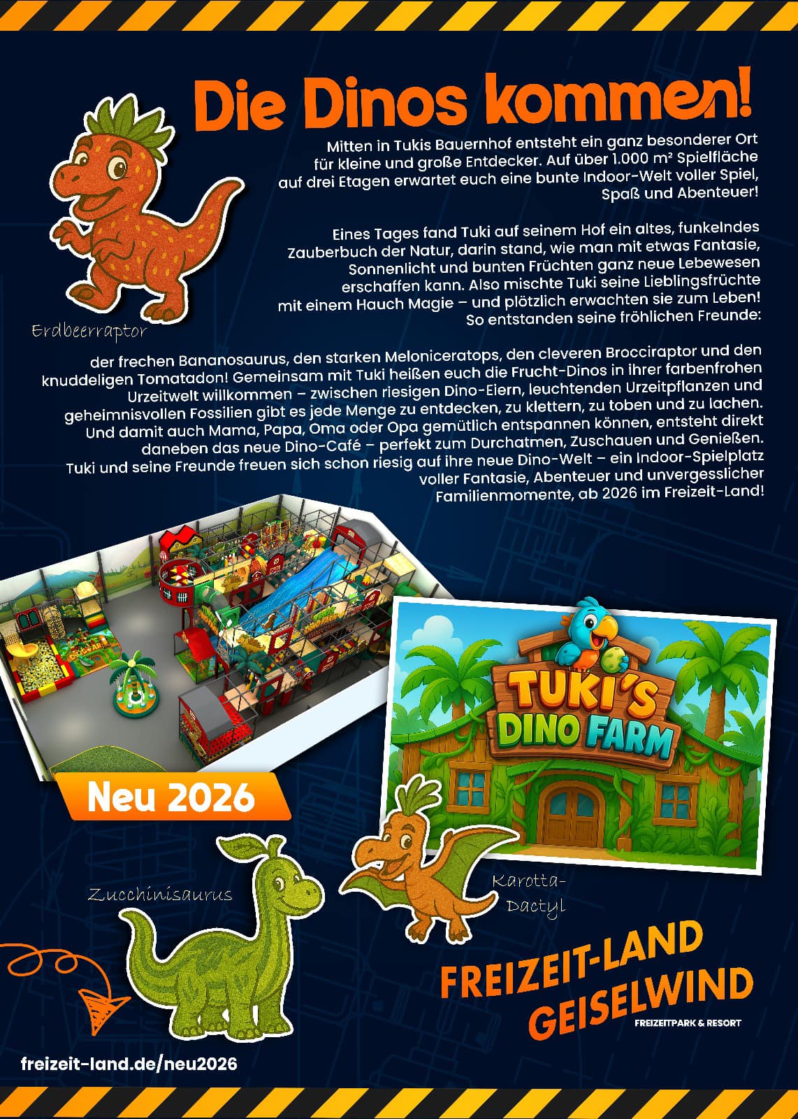 1. Tukis Dino Farm entsteht mitten in Tukis Bauernhof eine riesige, farbenfrohe Indoor-Spielhalle auf drei Ebenen und über 1.000 m² Fläche!