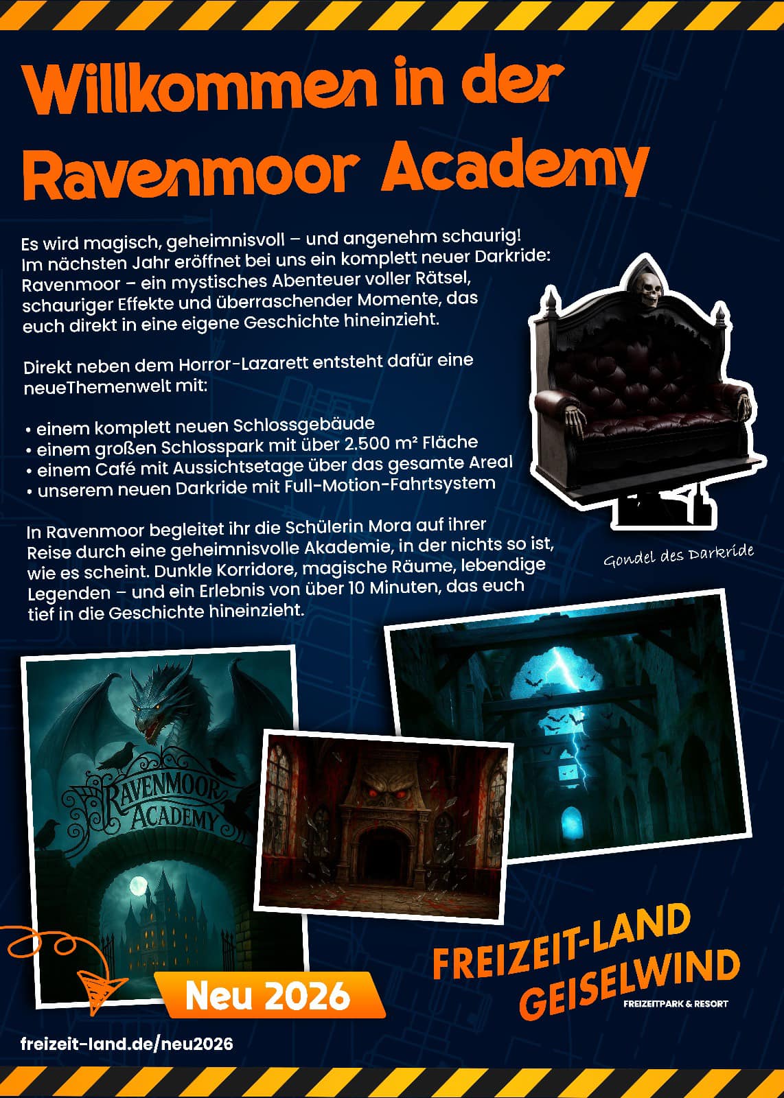 2. Im nächsten Jahr eröffnet bei uns ein komplett neuer Darkride: Ravenmoor – ein mystisches Abenteuer voller Rätsel, schauriger Effekte und überraschender Momente, das euch direkt in eine eigene Geschichte hineinzieht.