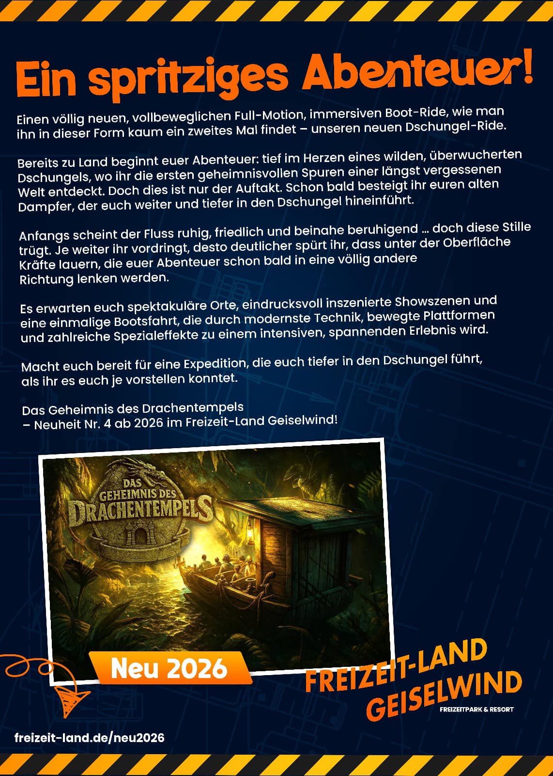 3.Einen brandneuen, vollbeweglichen Full-Motion-Boot-Ride, wie man ihn in dieser Form kaum ein zweites Mal findet – unseren neuen Dschungel-Ride.