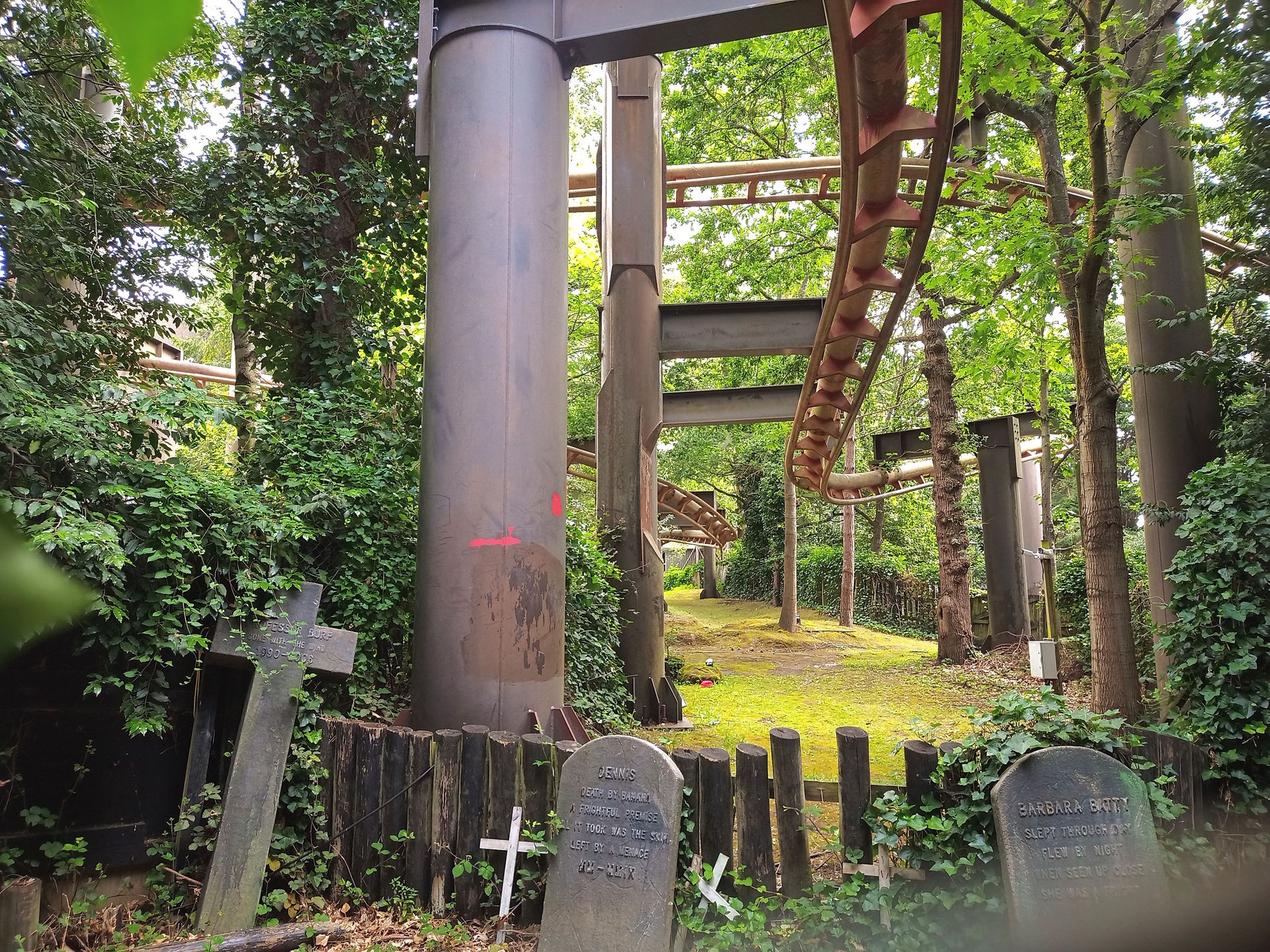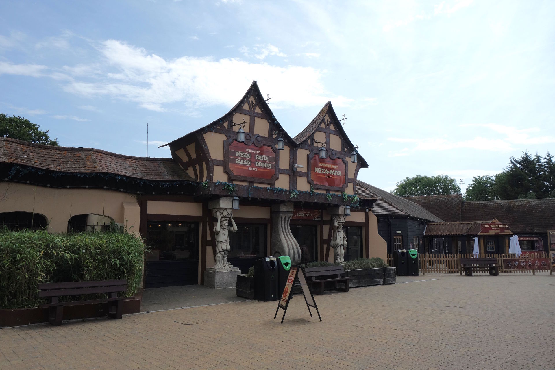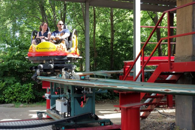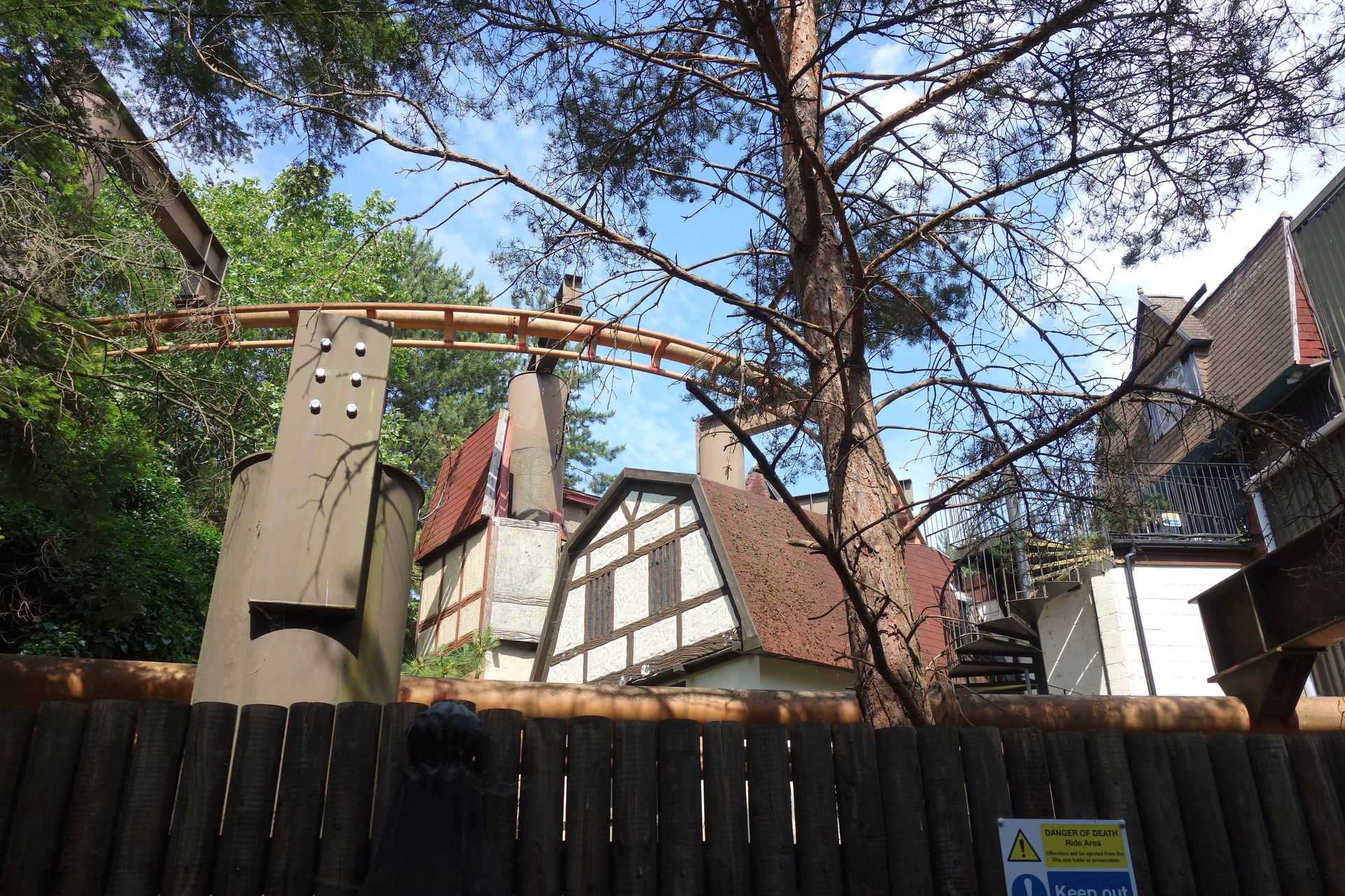 Frisch gestärkt - trotz zum Teil leicht krummer Messer - ging es schließlich ganz entspannt zum Bus, der uns in rund 20 Minuten durch Epsom in den nordwestlich benachbarten Stadtteil Chessington des Royal Borough (Königlicher Bezirk) of Kingston upon Thames - der seinerseits als einer von 32 London Boroughs zusammen mit der eigentlichen City of London zur britischen Hauptstadt gehört - brachte. Denn südlich des Ortes war 1931 der von Reginald Stuart Goddard gegründete Chessington Zoo eröffnet worden - der größte private Zoo Englands. Nach Goddards Tod 1946 übernahm die als Bauunternehmen gestartete und als Industriekonzern großgewordene Mediengruppe S. Pearson and Son (heute einfach nur Pearson) den Zoo. 1978 wollte das expandierende Wachsfigurenkabinett Madame Tussauds den Chessington Zoo übernehmen, woraufhin Pearson seinerseits Madame Tussauds aufkaufte und die Tussauds Group gründete. Die wurde 1998 wiederum an Charterhouse Development Capital und 2005 weiter an Dubai International Capital verkauft. 2007 schlug dann Blackstone zu und fusionierte die Tussauds Group mit der zwei Jahre zuvor übernommenen Merlin Entertainments Group - wobei die ursprünglichen Madame-Tussauds-Einrichtungen (zusammen mit Alton Towers und Thorpe Park) zur Finanzierung des Deals an die private Investmentfirma Prestbury verkauft und für zunächst 35 Jahre zurückgeleast wurden. Aber zurück zum Chessington Zoo, der Anfang der 1980er Jahre mit sinkenden Besucherzahlen zu kämpfen hatte. Daher beauftragte Tussauds (unter anderem) einen gewissen John Richard Wardley, den Zoo zu einem Freizeitpark auszubauen. Als Chessington World of Adventures eröffnete einer der ersten kombinierten Tier- und Vergnügungsparks im Vereinigten Königreich schließlich 1987.