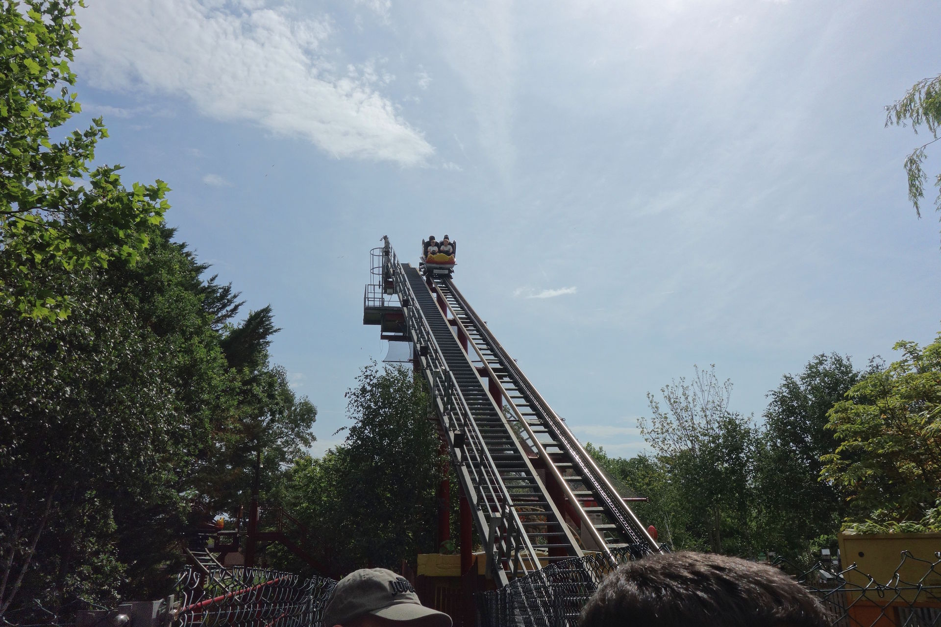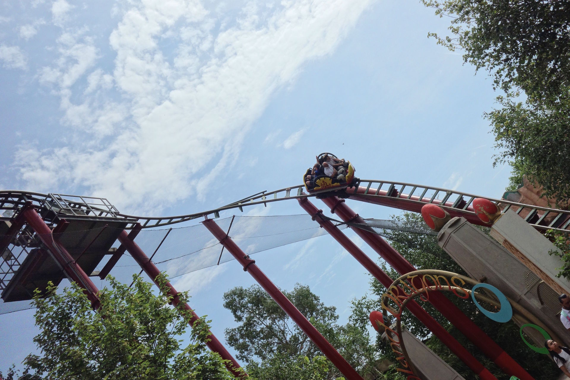 10 Minuten nach offizieller Öffnung des Parks hatten wir nun also schon die Hälfte der vier Achterbahnen im Sack.