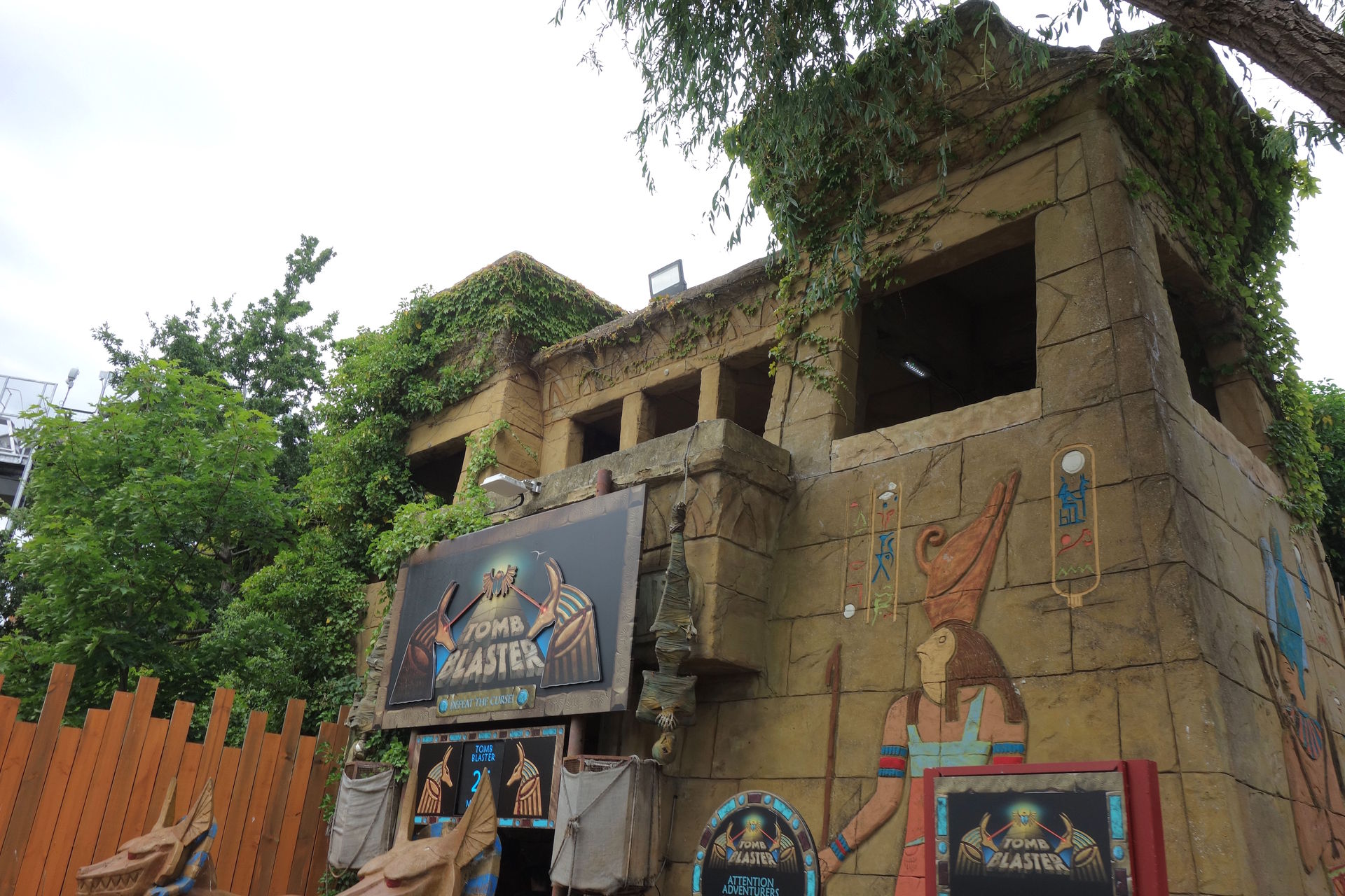 Gleich nebenan befindet sich der Shooting Darkride Tomb Blaster mit einer angeschlagenen Wartezeit von 25 Minuten.