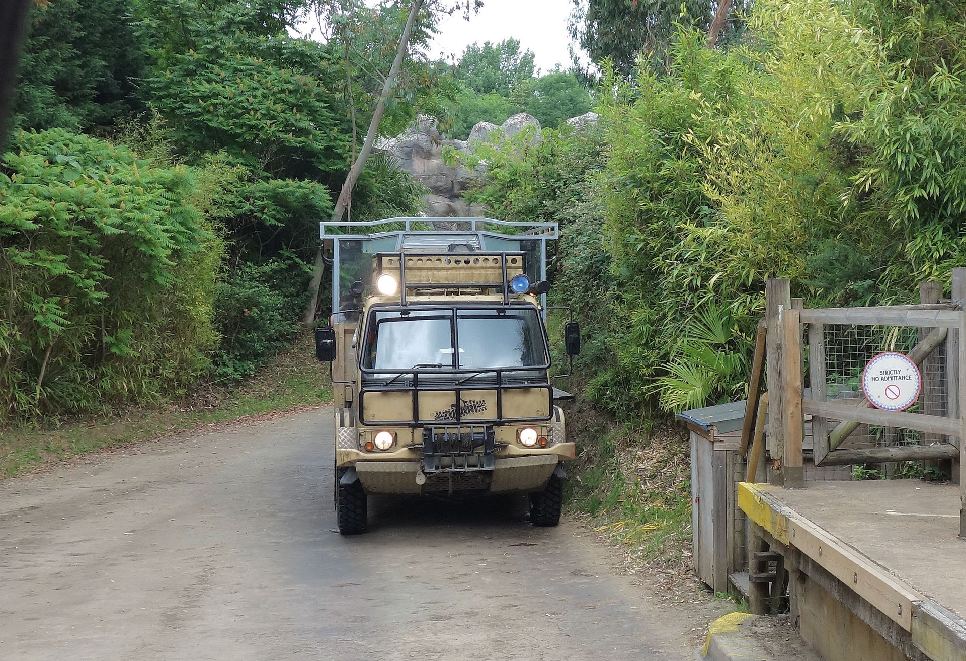 Während der Entwicklung des 4-Tonnen-LKWs für das britische Militär wurde Leyland Trucks 1987 von DAF übernommen, die ersten Fahrzeuge wurden unter der Marke Leyland DAF ab 1990 ausgeliefert. 1993 geriet DAF in Schwierigkeiten und Leyland wurde wieder abgestoßen. DAF wurde 1996 von Paccar aufgekauft, Leyland folgte 1998, sodass beide Marken heute wieder zum gleichen Unternehmen gehören - aber eben als separate Marken. Aber zurück zum T244, von dem bis 1995 rund 4.200 Fahrzeuge an das britische Militär ausgeliefert worden waren, weitere rund 200 gingen in den Folgejahren an andere Streitkräfte. In Großbritannien sollten die Trucks bis 2014 ausgemustert werden, was sehr gut zum Eröffnungsjahr von Zufari passt. Es handelt sich also sehr wahrscheinlich um ausgemusterte Armee-Fahrzeuge, die durch UK Loco mit einem neuen Aufbau versehen und im Safari-Stil gestaltet wurden.