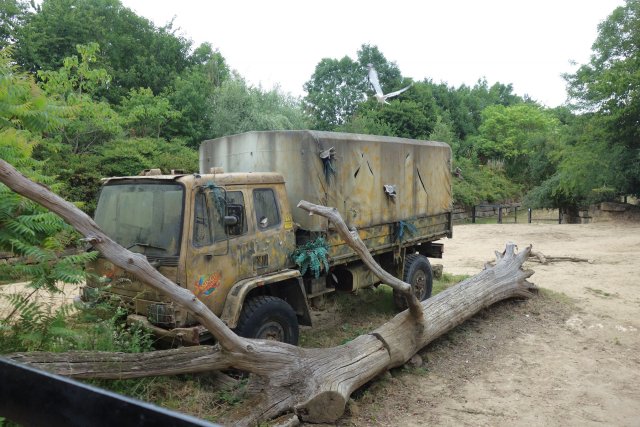 Und tatsächlich meldete sich alsbald eine Gruppe von FKFlern, die vor dem zweiten Drop in 15 Metern Höhe festhingen und schließlich evakuiert wurden. Das ließ befürchten, dass sich die Wiederinbetriebnahme der Wildwasserbahn noch etwas hinziehen würde. Somit musste ich leider auf Tiger Rock verzichten, denn da sich von Chessington aus ein Abstecher am besten umsetzen ließ, wollten wir in Kürze zum Alibi-Sightseeing nach London aufbrechen. Statt der ins Wasser gefallenen - oder sagt man hier ins Trockene gefallenen? - Wildwasserbahnfahrt entschied ich mich daher, die verbliebene Viertelstunde für eine schnelle Runde durch den bisher ebenfalls vernachlässigten Zoo zu nutzen. Beginnend zwischen Zufari und den Hotels.