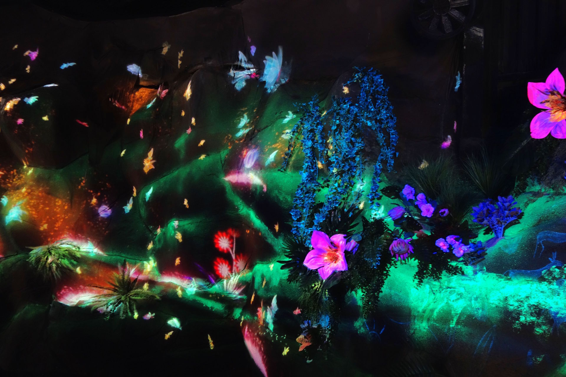 Und zum Finale geht es noch durch eine kleine Höhle mit ganz coolen Schmetterlings-Projektionen.