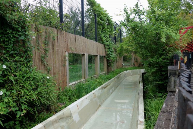 Allerdings nicht so, wie ich mir das vor Ort dachte. Vergeblich suchte ich den Themenbereich nach einem Zugang zu diesem Weg quer durch das Tigergehege samt Brücken über die regulären Wege ab, in der Hoffnung von dort oben einen der Tiger sehen zu können. Irgendwann fiel dann der Groschen, dass man sich hier doch etwas anderes ausgedacht hatte (und natürlich hatte ich das damals zur Eröffnung auch gelesen, aber zwischenzeitlich wohl wieder verdrängt