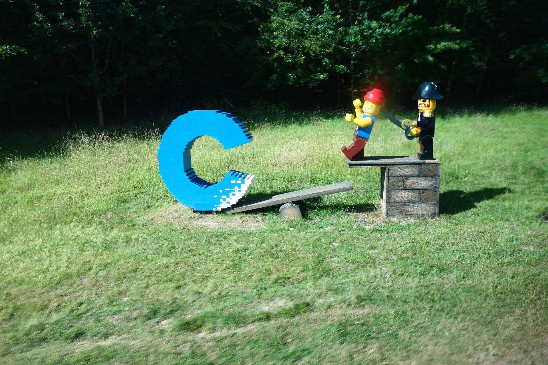 Es folgt eine enge Wende in jeweils entgegengesetzter Richtung. Team Legens umrundet dabei eine riesige Lego-Minifigur.