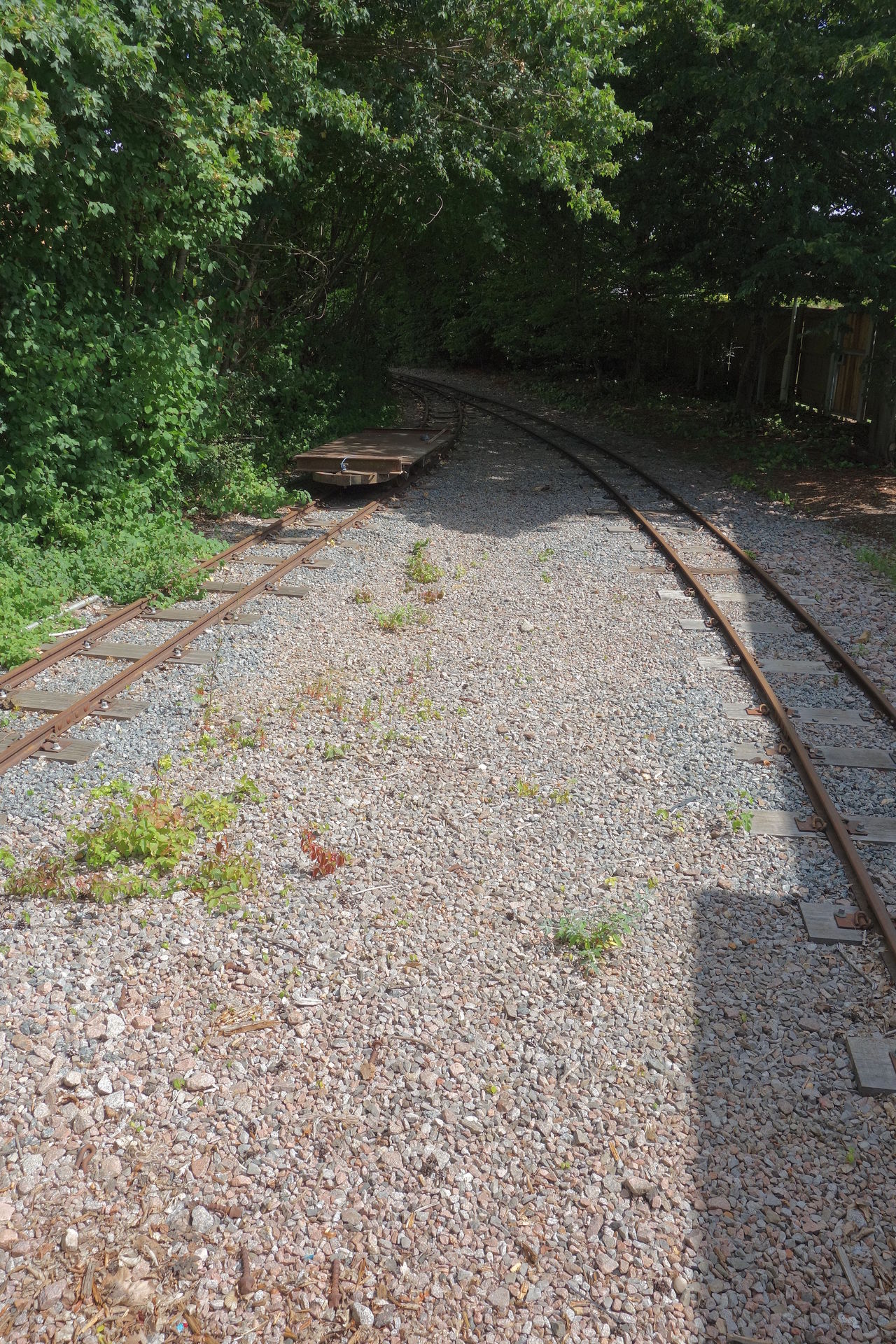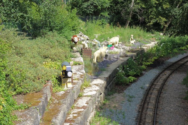 Tatsächlich kreuzt man hier weitere Gleise, nämlich jene zur Werkstatt der Parkeisenbahn.
