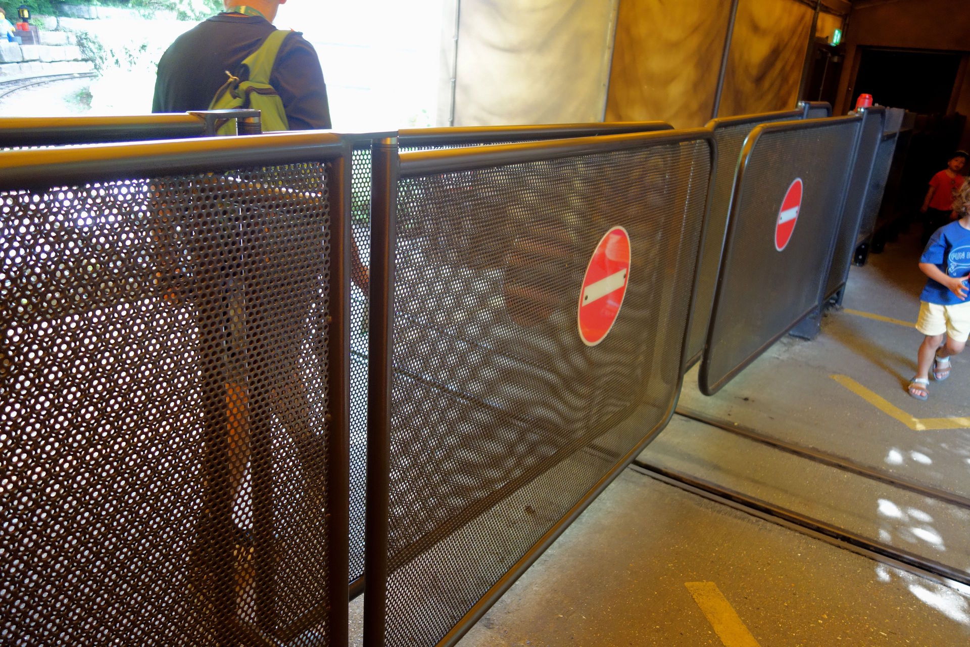 Ist die vorherige Fahrt abgefertigt, kann man endlich durch die Käfige unter den vier parallelen Lifthills hindurch zur Station laufen.