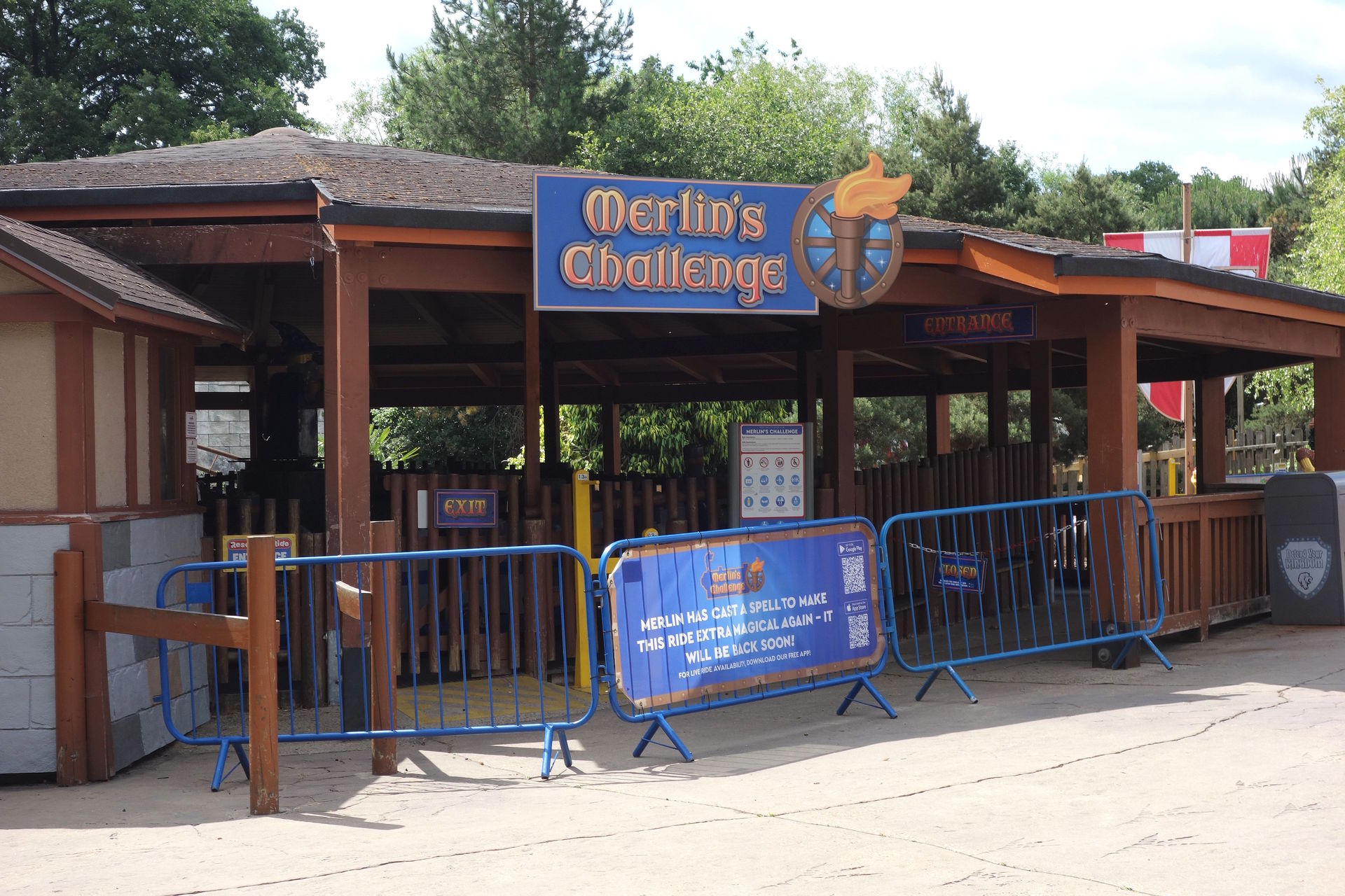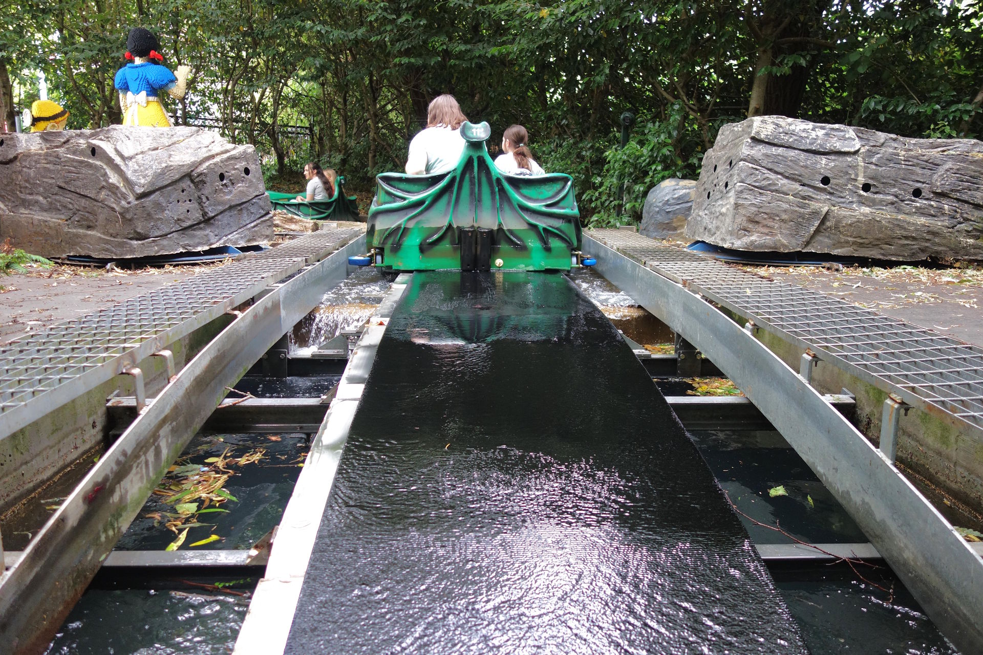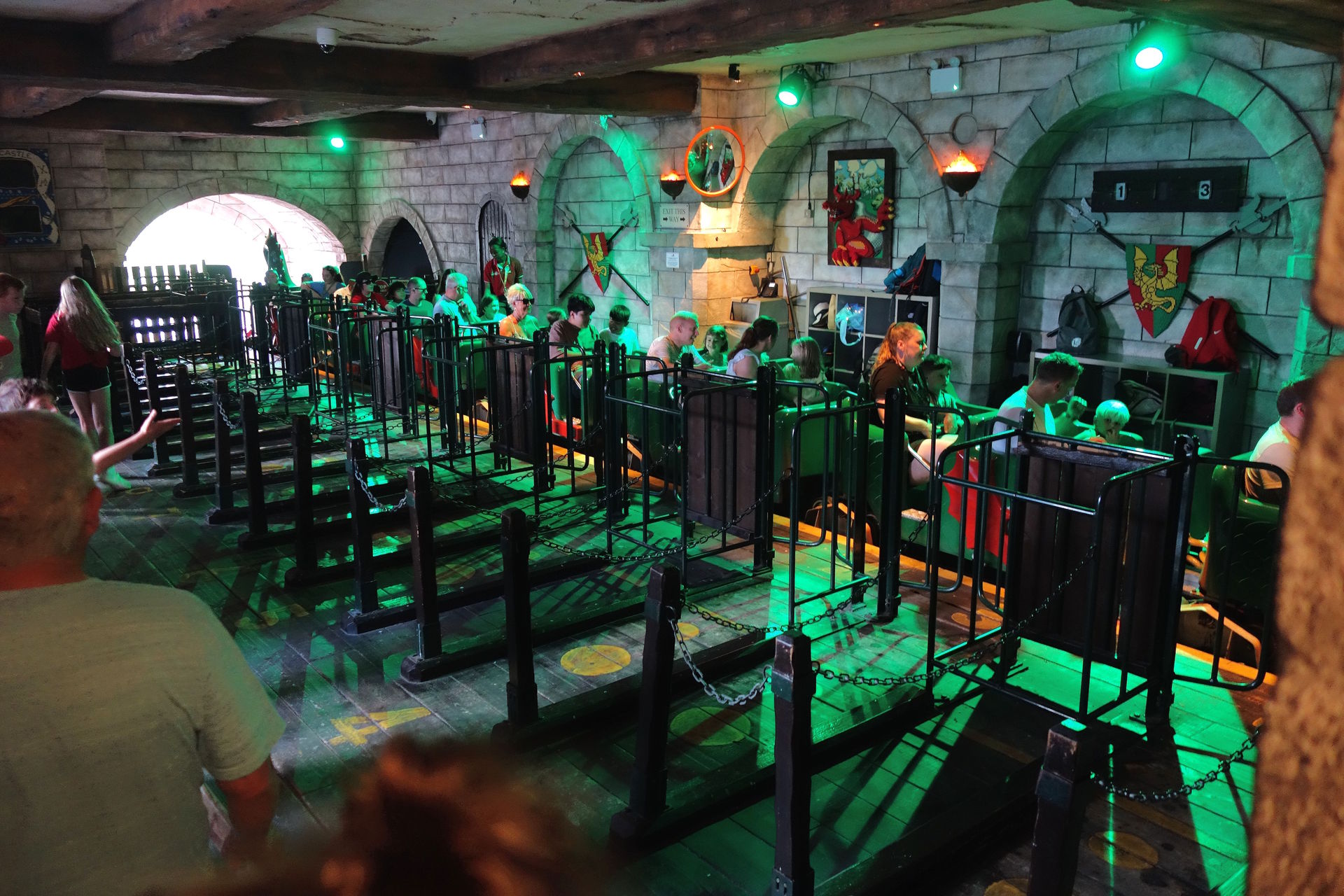 Nach dem Grüffelo-Ride am Vortag also schon der zweite Merlin-Darkride, in dem ich mit einer Störung stecken blieb. Auch hier kam nach kurzer Zeit eine Mitarbeiterin vorbei, die erklärte, dass es gleich weitergehen würde und ich auf Wunsch gerne nochmal fahren dürfe. Als sich der Wagen nach gut fünf Minuten dann wieder in Bewegung setzte, waren meine zuvor hart erspielten Punkte (hier wird der Zielpunkt nur beim Feuern sichtbar) natürlich weg und die Anzeige stand auf Null. In der Station gab es dann entgegen der Ankündigung auch keine Rückfrage, ob ich gleich nochmal fahren wöllte. Da ich aber eh abgelehnt hätte, nahm ich das leicht enttäuscht zur Kenntnis und machte mich endlich auf den Weg in Richtung des ersten Counts, der inzwischen geöffnet hatte.