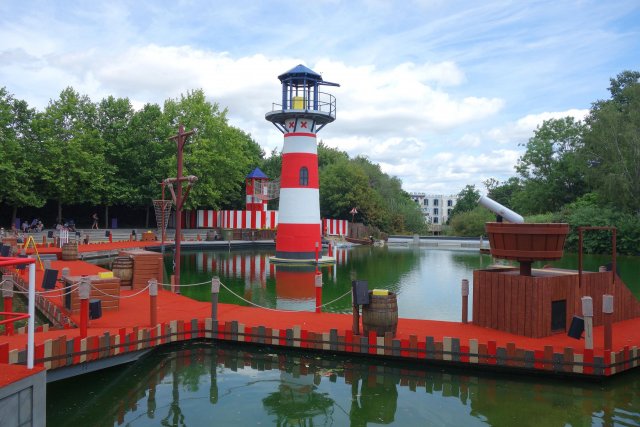 Erreichbar mit einer Brücke über die Strecke des Legoland Express.