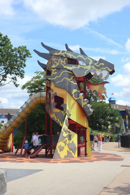 Fazit: Das Legoland Windsor überzeugt mit seiner Lage im hügeligen Gelände am Rande von Windsor. Die ermöglicht eine tolle Aussicht vom Plateau des Eingangsbereichs über den Park hinweg - auch wenn das mit gewissen Strapazen verbunden ist, wenn man vom unteren Ende wieder nach oben möchte und dafür nicht den Hill Train nutzt. Die Kapazitäten sind für einen Park mit dieser Anziehungskraft oftmals leider etwas knapp bemessen, dennoch fand ich bei meiner Runde meist noch annehmbare Wartezeiten vor. Highlights dieses Legolands waren für mich der herstellerbedingt einzigartige Dragon mit seinen weiten Kurven und den ungewohnt fließenden Übergängen von freier Strecke zu den Lifthills, sowie natürlich der rasante Minifigure Speedway.