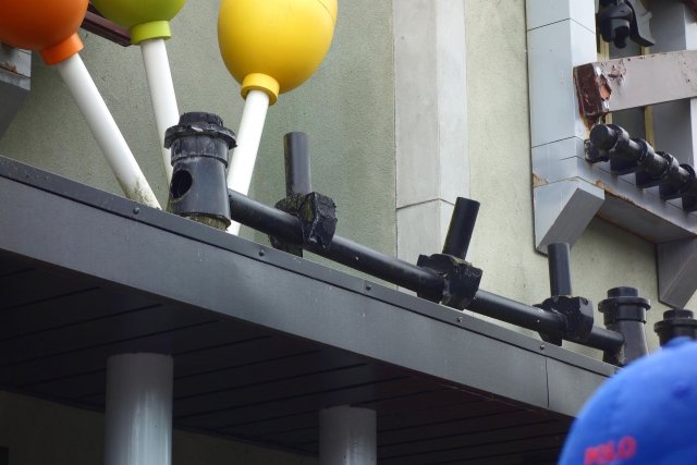 Aufgrund der Hanglage muss man hier im Gegensatz zu den anderen Ninjago-Rides zunächst Treppen steigen.