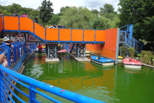 Grund ist ein Förderband, das den minimalen Höhenunterschied zwecks Strömung überwindet und die Boote anschließend wieder separiert.