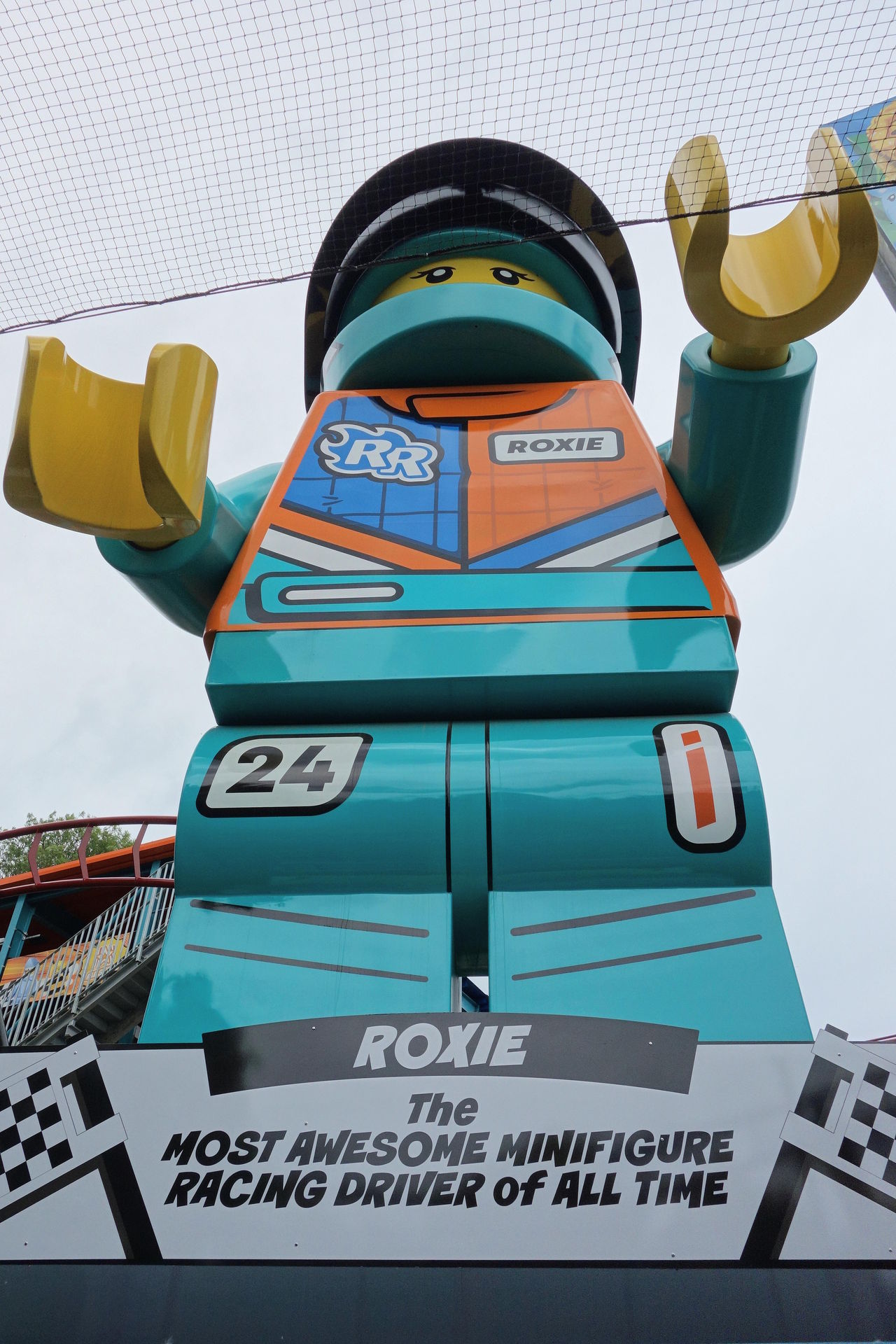 Zunächst geht es zwischen Betonwänden mit Leitplanken leicht bergauf und dann mit einer Zickzack-Rampe zum Haupt-Wartebereich. Der besteht im Grunde aus einer großen Asphalt-Fläche mit mehr Zick-Zack, wiederum eingerahmt von Leitplanken. Dort folgt dann direkt die Einteilung, wobei auch die Fastrack-Nutzer eingeschleust werden. Hierbei beschränkt man sich allerdings immer auf die Besatzung eines Zuges pro Seite, obwohl sich nochmal eine komplette Zick-Zack-Rampe anschließt, ehe man zur Pre-Show gelangt. Da verschenkt man reichlich Platz. Andererseits muss ich gestehen, dass sich der Andrang beim Minifigure Speedway - den ich durchaus als neue Hauptattraktion des Parks gesehen hätte - ziemlich in Grenzen hielt. Es dauerte keine 15 Minuten, bis ich im Team All Stars zur Pre-Show durfte. Die besteht aus einem kurzen Einspieler, bei dem die jeweiligen Teamcaptains durch Roxie ernannt werden. Für Team Legends stehen