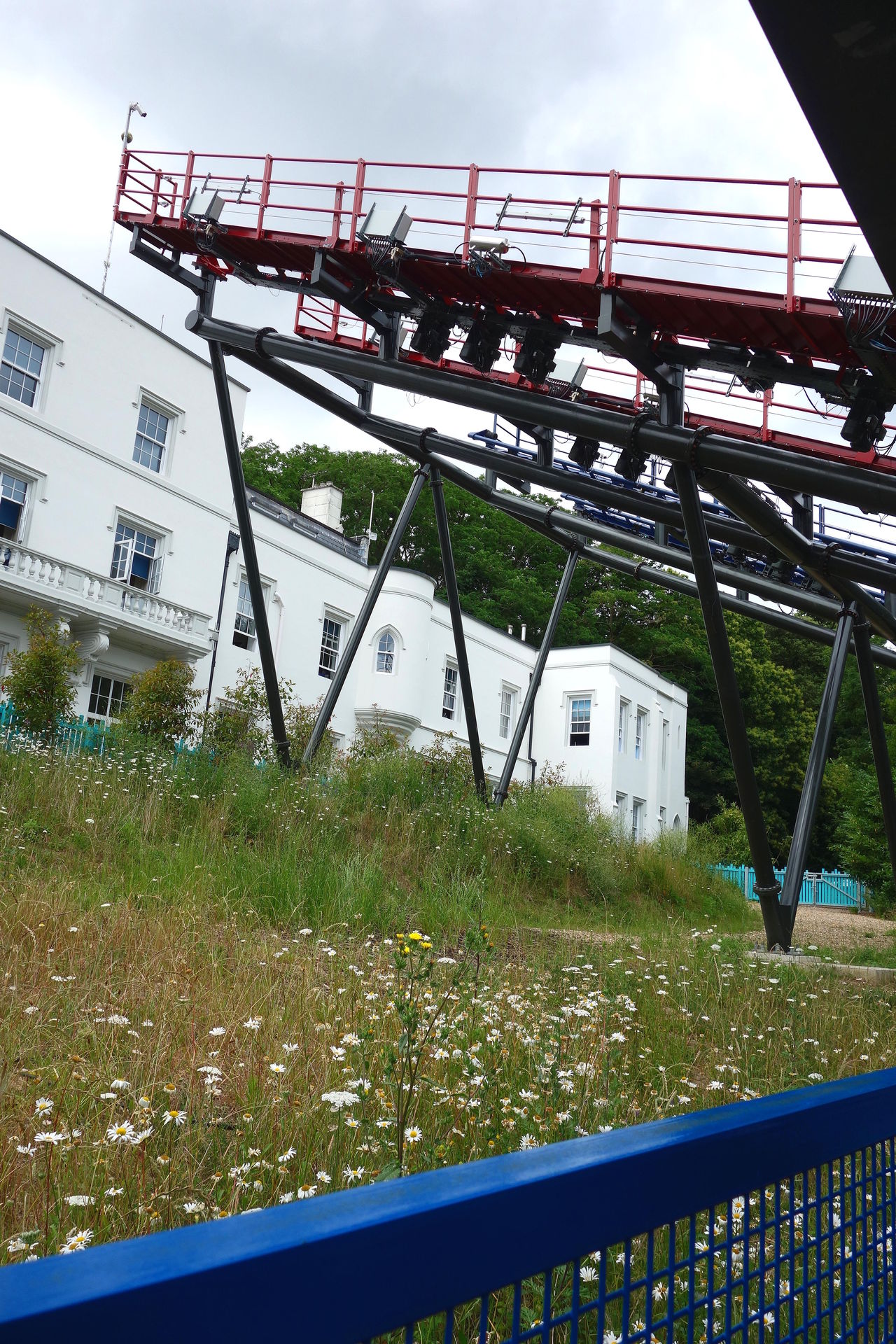 Und es freut mich sehr, dass 2026 ein Klon davon im Legoland Billund anstelle des abgerissenen Raftings eröffnen wird. Dort allerdings auf flachem Gelände, weshalb sich die hier in Windsor trotz Hanglage noch recht hoch aufgeständerten Kurven ein gutes Stück in den Boden eingraben müssen. Weitere Auslieferungen des Dueling Reverse Coasters sind noch nicht bekannt, aber ich bin zuversichtlich, dass es nicht bei diesen beiden Anlagen bleiben wird.