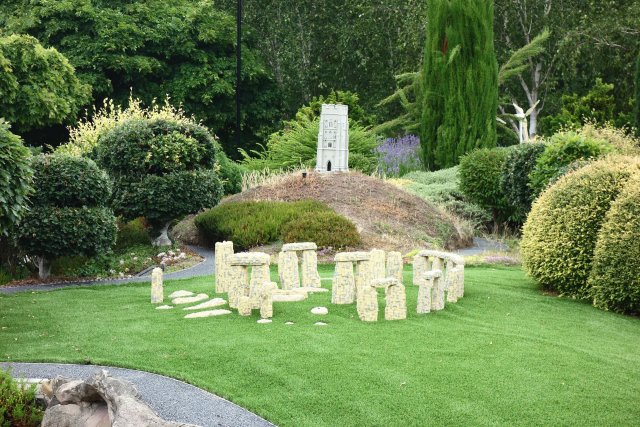 Der Turm hinter Stonehenge steht im Original auf dem Glastonbury Tor, wobei das keltische Tor wohl konischer Hügel bedeutet. Auf diesem Hügel war im 5. Jahrhundert zunächst eine Festung und im Mittelalter eine Kirche errichtet worden. Im 14. Jahrhundert wurde dann die Kirche St. Michael's gebaut, von der heute nur noch die restaurierte Ruine des Turms übrig geblieben ist.