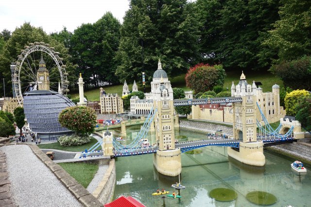 Bei der Tower Bridge passen leider die Proportionen nicht ganz, die künstliche Themse ist etwas zu schmal geraten.