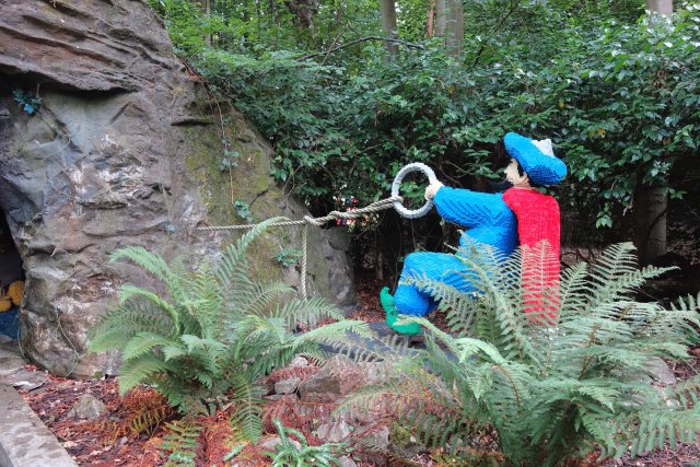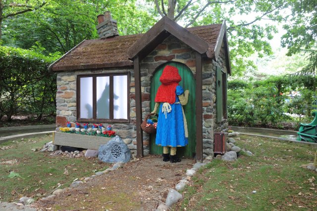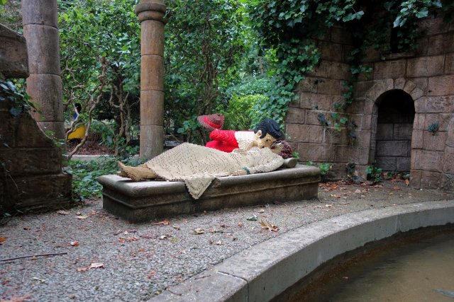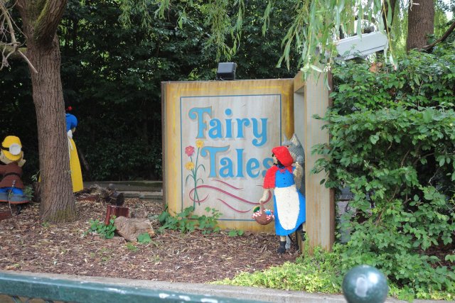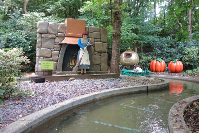 In gemütlichem Tempo schippert man durch einen dicht bewaldeten Teil des Parks mit diversen Märchenszenen am Rande des Kanals.