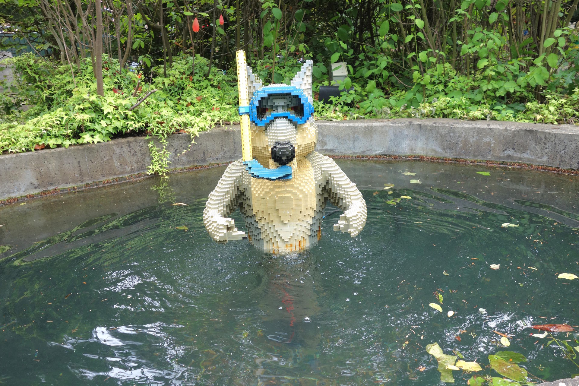 Die kurzzeitig größte der Welt. Ihre 9 Meter Höhe wurden inzwischen von einer 26 Meter hohen Figur im neuen Legoland Shanghai übertroffen.